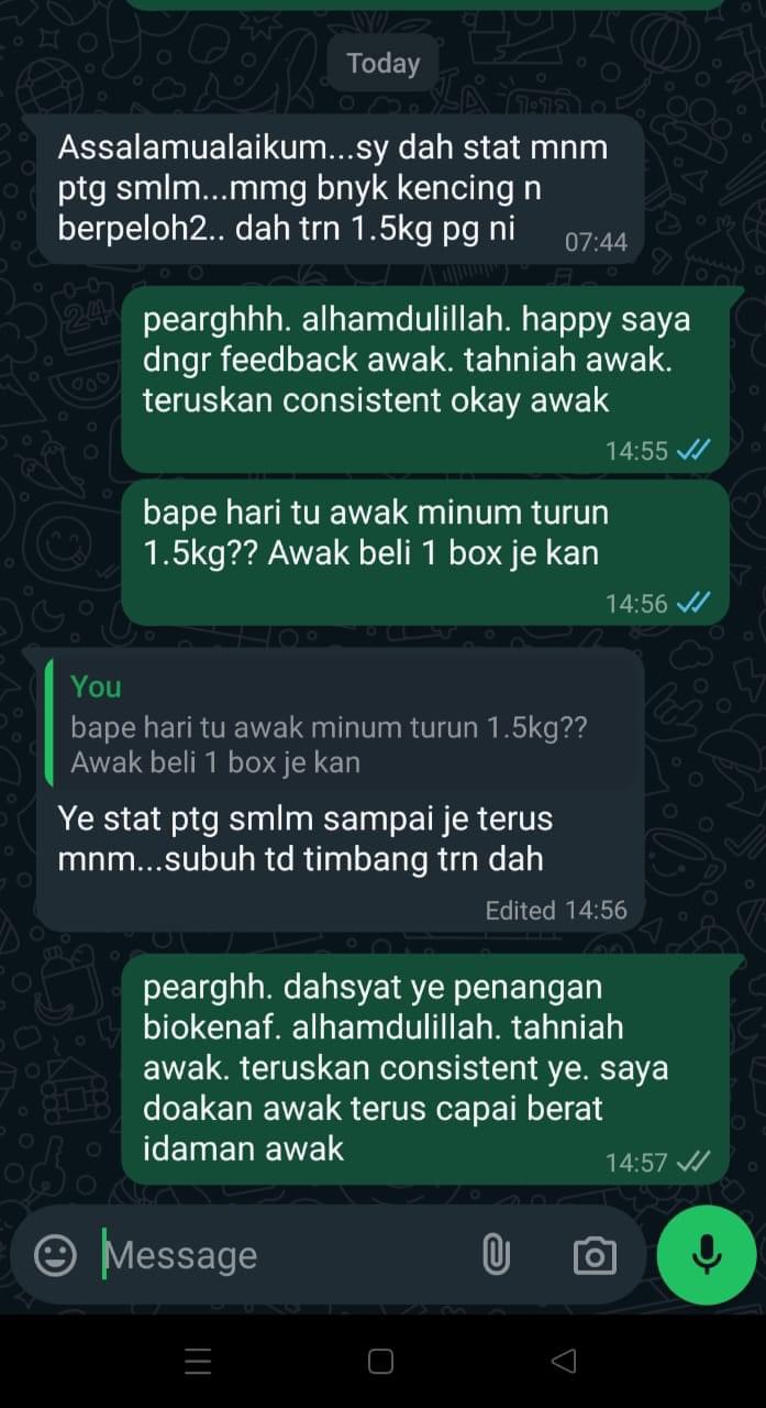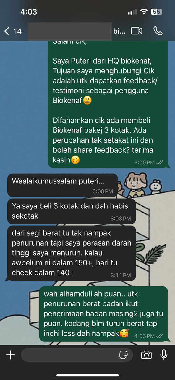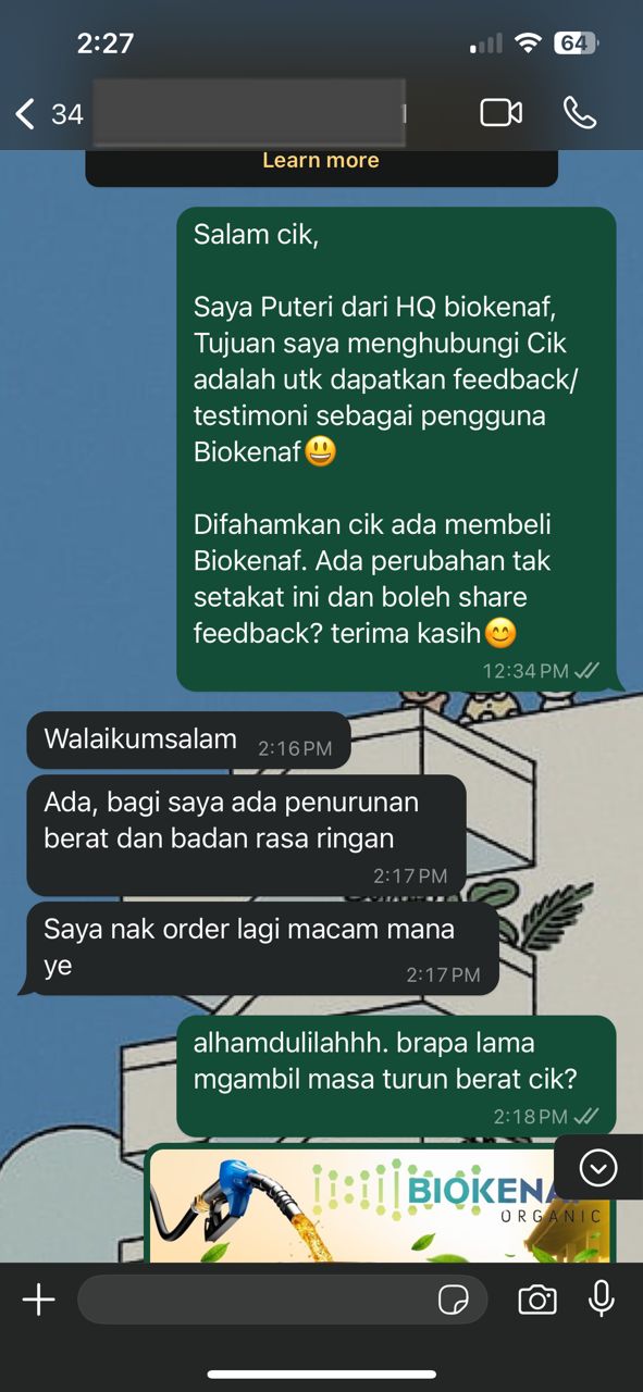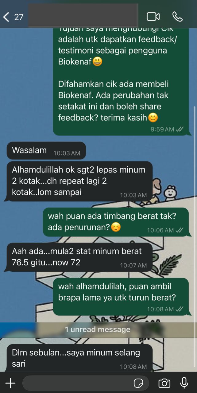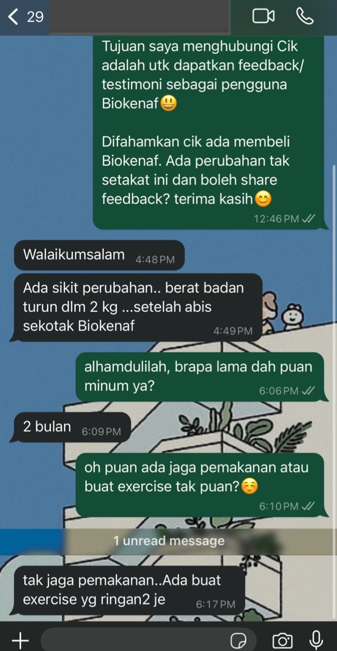 Kesan Dialami Pengguna Biokenaf Seawal 28 Hari Melalui Temubual Whatsapp
